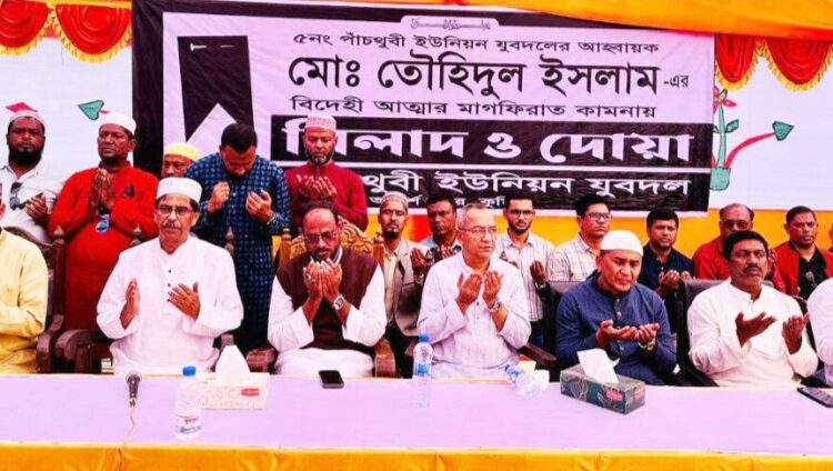 কুমিল্লায় যৌথ বাহিনীর হেফাজতে নিহত যুবদল নেতা তৌহিদুল ইসলাম এর বিদেহী আত্মার মাগফিরাত কামনায় মিলাদ, দোয়া ও শোক সভা অনুষ্ঠিত হয়।