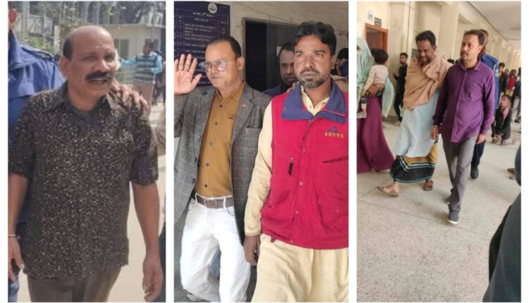 আসামিরা হলেন, তাড়াশ উপজেলা আওয়ামী লীগের সাংগঠনিক সম্পাদক মোজাম্মেল হক মাসুদ, শ্রম বিষয়ক সম্পাদক কিসমত হোসেন দুলু, কাউরাইল সরকারি প্রাথমিক বিদ্যালয়ের প্রধান শিক্ষক আইয়ূবুর রহমান রাজন, সাবেক পৌর কাউন্সিলার মো. বাবু তালুকদার, সাবেক ইউপি সদস্য বকুল হোসেন, যুবলীগ নেতা হায়দার আলী, সমর্থক বাদল দাস ও এনাম হোসেন।