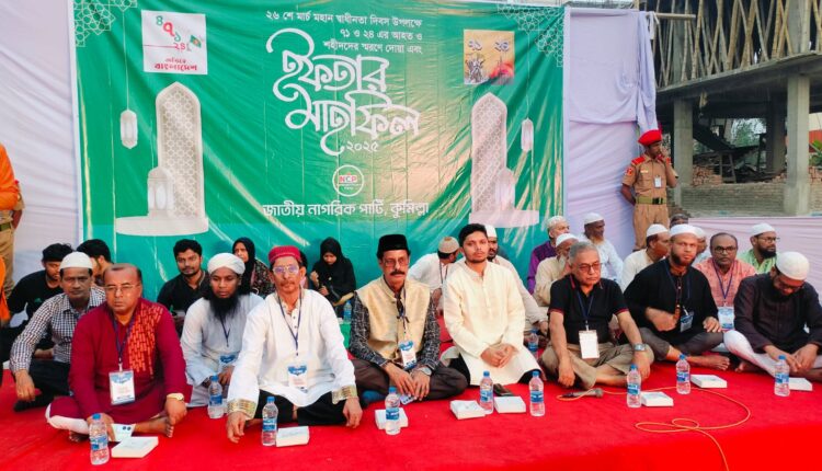 কুমিল্লায় ৭১ ও ২৪ এর আহত ও শহিদদের স্মরণে জাতীয় নাগরিক পার্টির (এনসিপি) উদ্যোগে গণইফতার ও আলোচনা সভা অনুষ্ঠিত হয়েছে।