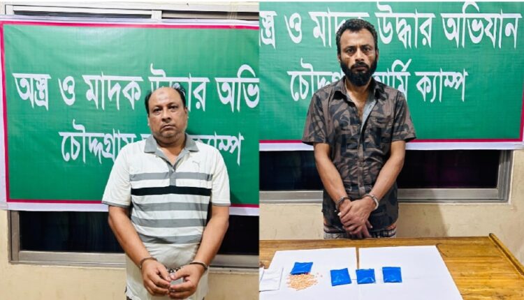 আটককৃত তৌহিদুল ইসলাম চৌদ্দগ্রাম পৌরসভা শ্রমিক লীগের সভাপতি এবং অপরজন মাদক ব্যবসায়ী আব্দুল মতিন পৌরসভার পূর্ব চান্দিশকরা গ্রামের আব্দুল জলিল জুলুর ছেলে। আব্দুল মতিন এর বিরুদ্ধে একাধিক মাদক মামলা রয়েছে।
