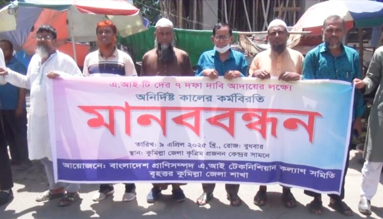 কুমিল্লায় ৭দফাদাবিতে প্রাণিসম্পদ বিভাগের এআই টেকনিশিয়ানদের কর্মবিরতি