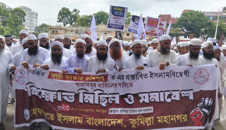 বিতর্কিত নারী সংস্কার কিমশন ও এর প্রস্তাবিত ইসলামবিদ্বেষী ধারাসমূহ বাতিলের দাবিত ২৩ মে শুক্রবার বাদ জুম্মা কুমিল্লা টাউন হল মাঠে কেন্দ্রী কমূসূচির অংশ হিসেবে এক বিক্ষোভ মিছিল ও সমাবেশ অনুষ্ঠিত হয়। হেফাজতে ইসলাম বাংলাদেশ কুমিল্লা মাহানগর শাখা এ মিছিল ও সমাবেশ আয়োজন করেন।