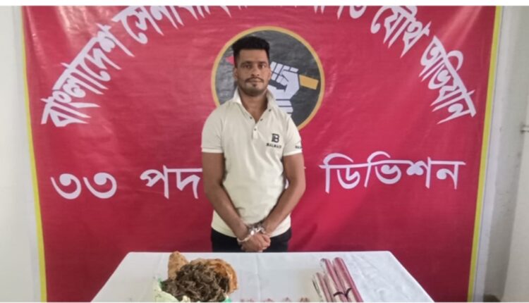 যৌথবাহিনীর অভিযানে বিপুলপরিমাণ মাদকদ্রব্যসহ যুবক আটক