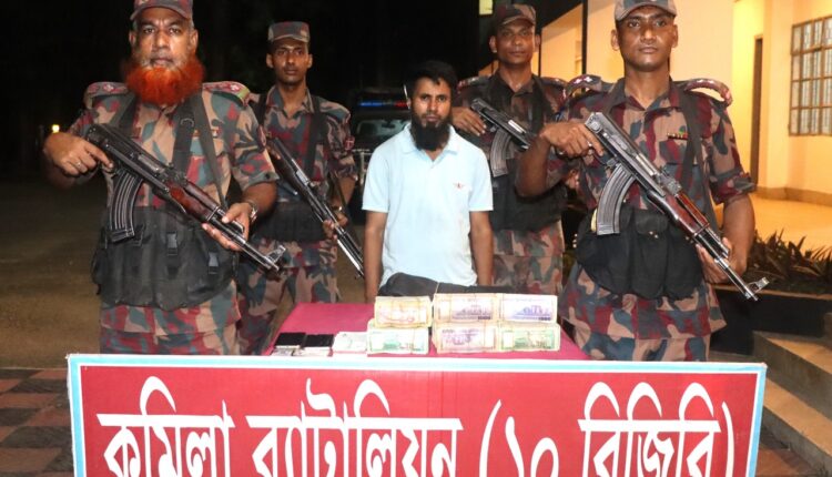 কুমিল্লার সদর উপজেলার বিষ্ণপুর সীমান্ত এলাকা থেকে ২৮ লাখ টাকাসহ এক হুন্ডি ব্যবসায়ীকে আটক করেছে বর্ডার গার্ড বাংলাদেশ (বিজিবি)।
