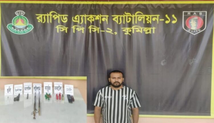 কুমিল্লায় সেনাবাহিনী ও র‌্যাবের যৌথ অভিযানে বিদেশী পিস্তল-গুলি-কার্তুসসহ ৩টিঅস্ত্রসহ সন্ত্রাসী শিশুল গ্রেপ্তার