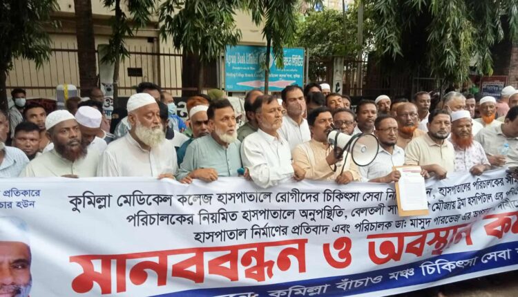 কুমিল্লা মেডিকেল কলেজে অনিয়মের পাহাড়, পরিচালকের অপসারণের দাবিতে কুমিল্লা বাঁচাও মঞ্চের মানববন্ধন