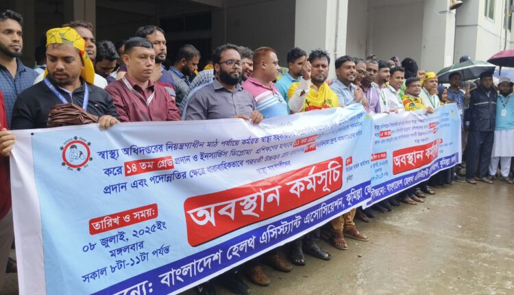 কুমিল্লায় ৬দফা দাবিতে অবস্থান কর্মসূচি পালন করেছে জেলার স্বাস্থ্য সহকারীরা