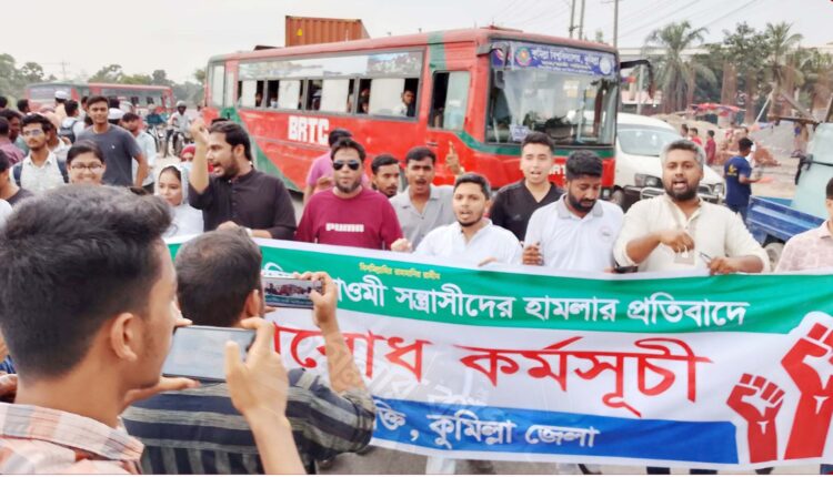 গোপালগঞ্জে এনসিপির পদযাত্রায় হামলার প্রতিবাদে কুমিল্লায় ঢাকা-চট্টগ্রাম মহাসড়ক ব্লকেড