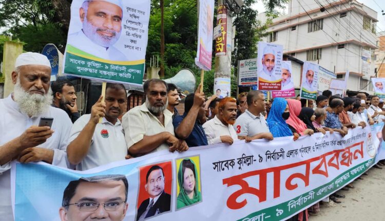 কুমিল্লা -৯ সংসদীয় আসন পূনর্বহালের দাবীতে মানব বন্ধন ও প্রতিবাদ সমাবেশ