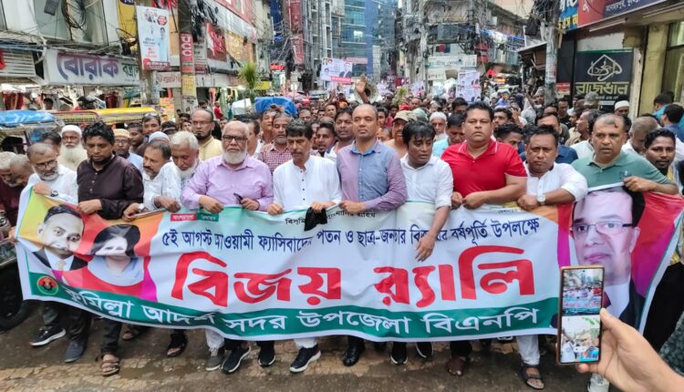 বৃষ্টি উপেক্ষা করে কুমিল্লায় হাজী ইয়াছিনের নেতৃত্বে বিএনপির বিজয় মিছিল