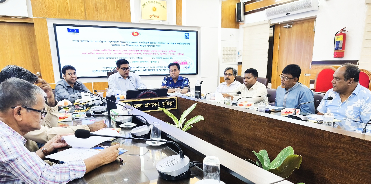অদ্য ১৮ আগষ্ট ২০২৫ তারিখ বেলা ১১ ঘটিকায় জেলা প্রশাসক, কুমিল্লা এর সম্মেলন কক্ষে গ্রাম আদালত প্রকল্পের ‘গ্রাম আদালত কার্যক্রম’ সম্পর্কে জনসচেতনতা তৈরিতে প্রচার-প্রচারণা কার্যক্রম পরিচালনায় স্থানীয় অংশীজনদের সাথে সমন্বয় সভার আয়োজন করা হয়। সভায় প্রধান অতিথি হিসেবে উপস্থিত ছিলেন জনাব মোঃ আমিরুল কায়ছার, জেলা প্রশাসক, কুমিল্লা। সভায় সভাপতিত্ব করেন জনাব মোঃ মেহেদী মাহমুদ আকন্দ, উপপরিচালক, স্থানীয় সরকার, কুমিল্লা।