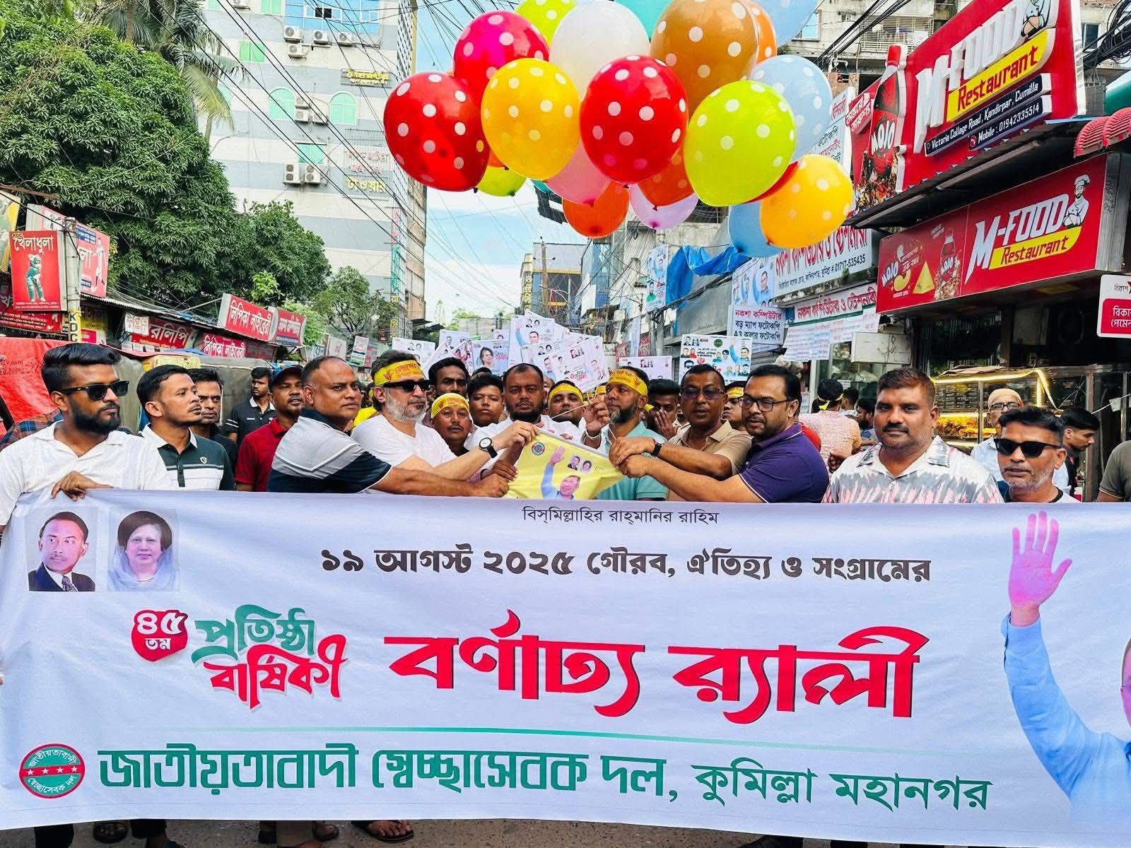 কুমিল্লায় বিভিন্ন কর্মসূচির মধ্য দিয়ে জাতীয়তাবাদী সেচ্ছাসেবকদলের ৪৫তম প্রতিষ্ঠা বার্ষিকী পালিত হয়েছে।