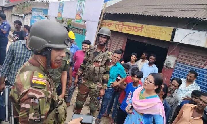 বাগমারা বাজারে অবৈধ স্থাপনা উচ্ছেদ অভিযান করেন ইউএনও হিমাদ্রী খীসা