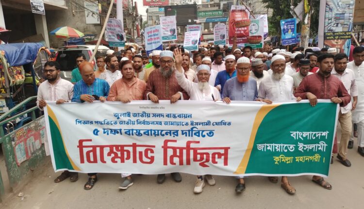 কুমিল্লা নগরীতে জামায়াতের বিক্ষোভ মিছিল ও সমাবেশ