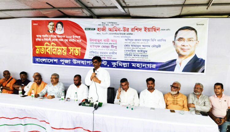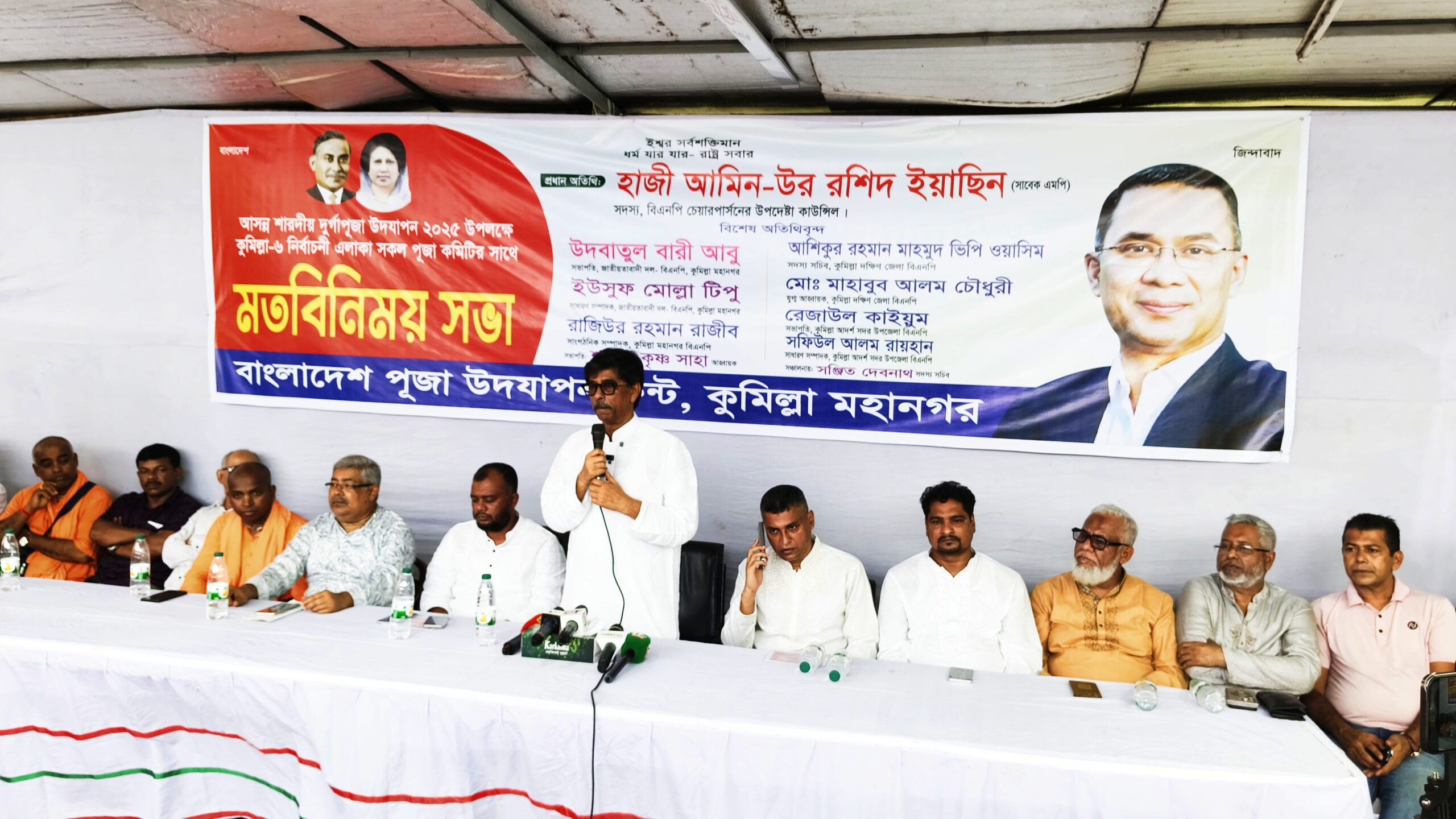 বাংলাদেশ পূজা উদ্যাপন ফ্রন্ট কুমিল্লা মহানগর শাখার আহ্বায়ক শ্যামল কৃষ্ণ সাহার সভাপতিত্বে ও সদস্য সচিব সঞ্জিত দেবনাথের সঞ্চালনায় অনুষ্ঠিত মতবিনিময় সভায় পূজা উদ্যাপন ফ্রন্টের নেতৃবৃন্দ বক্তব্য দেন।